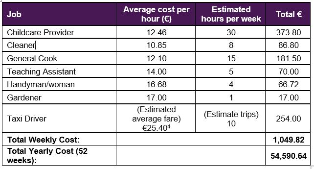 As part of its yearly assessment, Royal London Ireland examined the typical ‘everyday’ duties carried out by stay-at-home parents and researched the cost of employing someone to do these jobs using live wage data[3]. The duties included cooking, cleaning, chauffeuring children to activities, and so on. Royal London Ireland’s calculations reveal that the estimated annual cost to employ someone to fulfil these stay-at-home parent duties is €54,590.